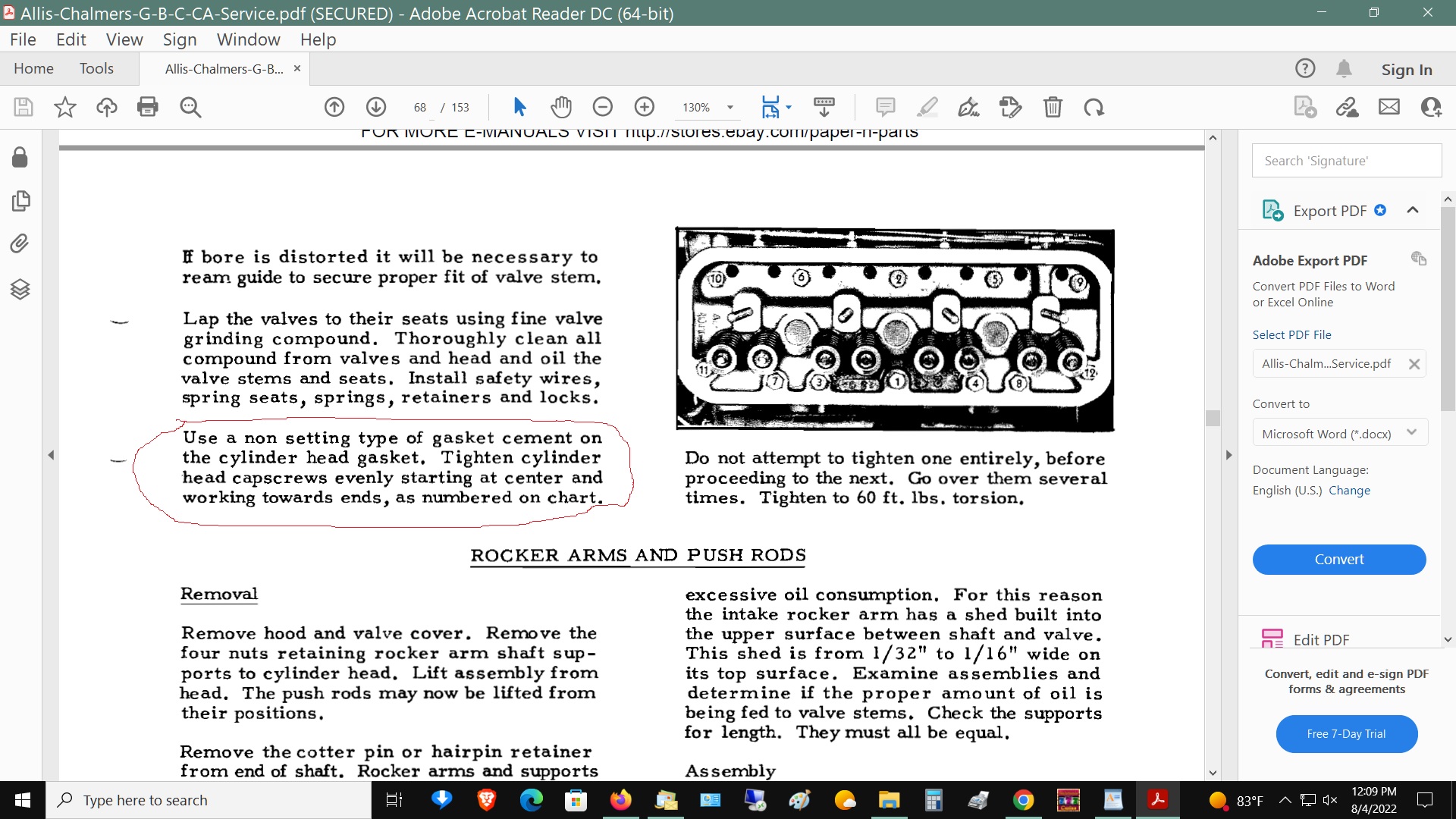 from the cylinder head. I re-torqued the head bolts to 60 foot lbs after