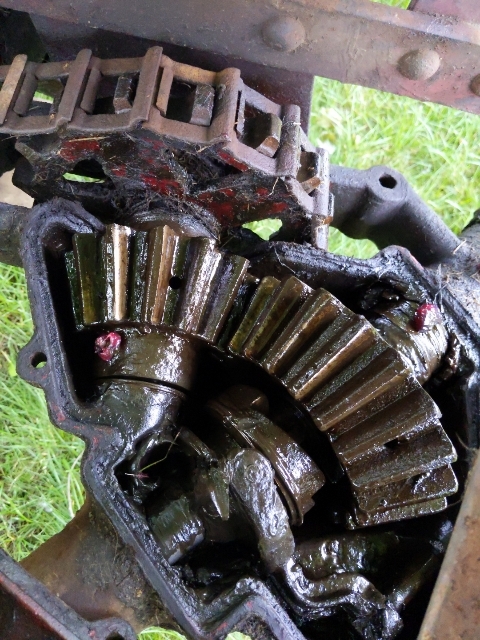 International harvester on this cover it says remove to fill with gear oil. I've tried finding information on this hay rake but I'd like to know how full of gear oil and it actually has two grease fittings on it which I was surprised as you can see where I put red grease...