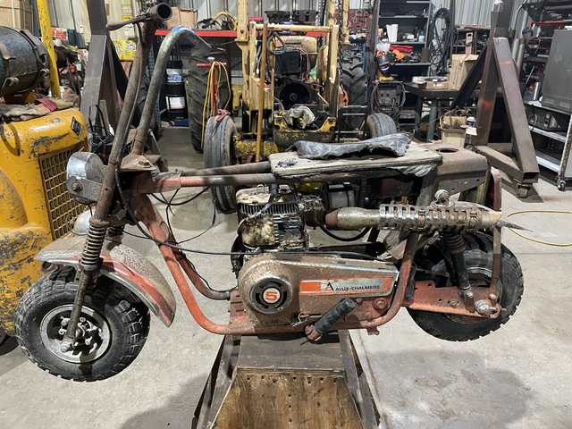 As I recall from the early 70's, I believe Allis had two models of a mini-bike. One was a "deluxe" model. Don't remember all of the differences, but one had larger tires. I see yours has a headlight which I think was also one of the differences between the models. I also don't remember who manufactured them for AC. Seems like one had a 5 HP engine with the other being slightly larger.