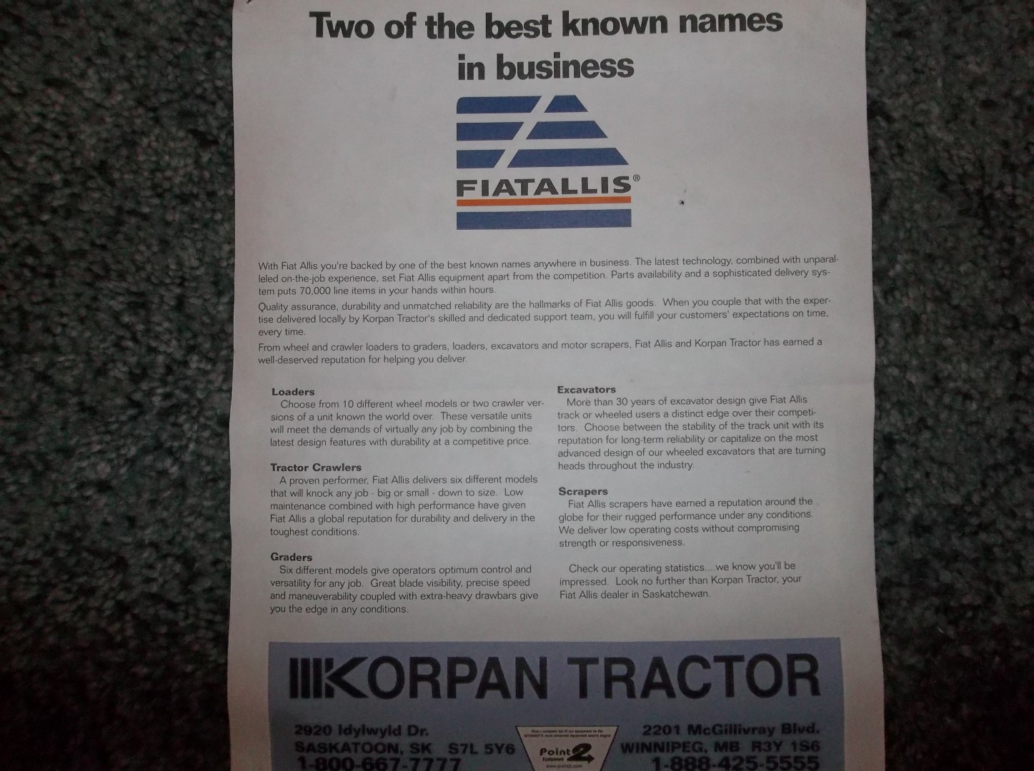 Post Options Post Options   Thanks (0) Thanks(0)   Quote 1955CA Quote  Post ReplyReply Direct Link To This Post Topic: Old Fiat Allis Add