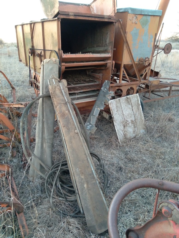 This one seems to have decent sheet metal - much better than my other one. The bin is good and I can probably thank the homemade cover that some previous owner made to fit on top. TBD on the cylinder area. The reel is mostly AWOL just like my other machine. The most interesting thing about this one is that it has a 7/16" round hole finishing screen in it. I can only find this being mentioned for popcorn and great northern beans in my AC literature. I didn't have calipers with me at the auction and I was hoping it was the 3/8" soybean screen, but it may do okay for those as well? There were a ton of spare belts and canvases stored on top of the straw walkers, plus a wheat/milo screen so I have an extra of those now. I don't know if the canvases are any good at this point. The straw walkers themselves have a couple of holes in them but I should have enough slats to make one good one out of my two. Don't get me wrong... I'm still keeping my fingers crossed I find one of these in good shape hiding in a barn locally, but I may be able to get this new machine working with parts from the other one. ![]() ![]() ![]() |