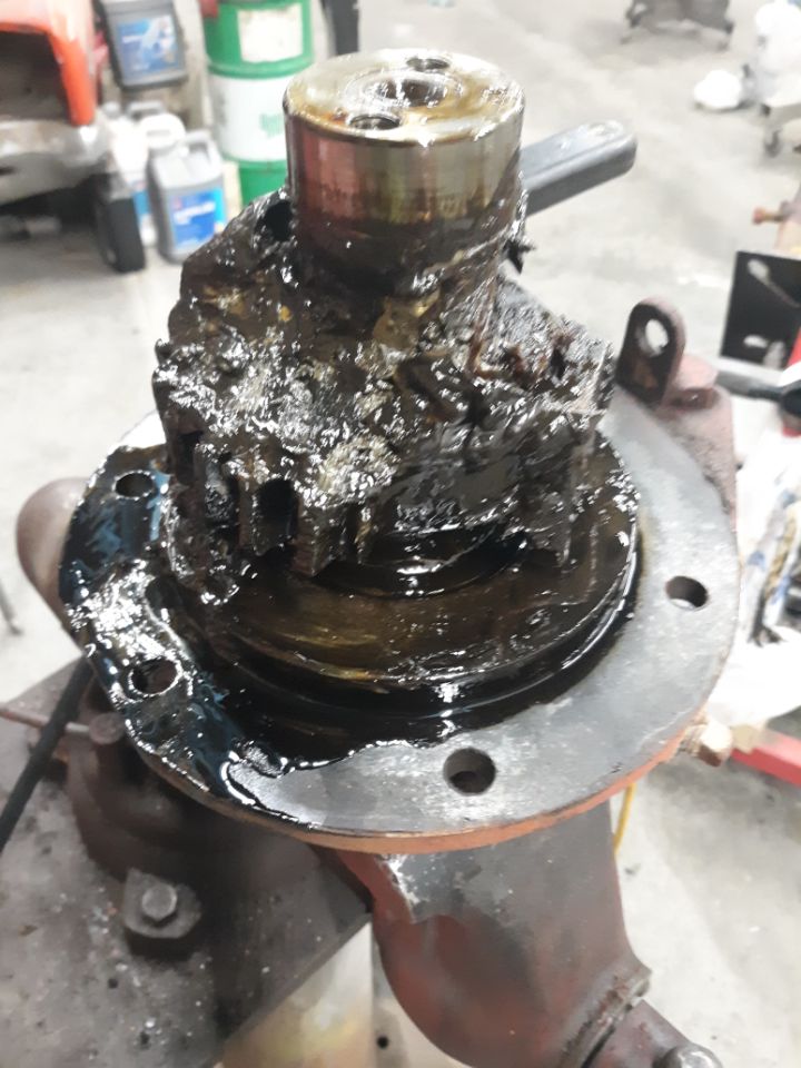I see it's been a while since posting on this. Many things to do. Still blasting and cleaning a few small parts. Started on teardown of front axle. Was dreading this as afraid it would be as difficult as the 7XXX,s have been. Remarkably, it was an easy push with the Porta Power and the spindle assembly is out of the axle tube. Will be replacing the spindle bushings