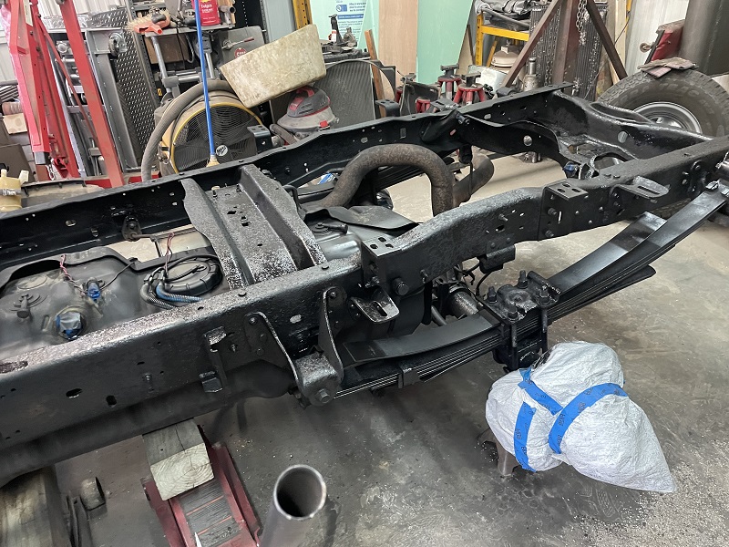Have initiated the attack on the big iron pile. Rusting away bed is ready to come off, fuel filler, tail lights and previously loosed floor bolts is all attaching today.