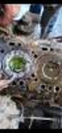 I will say, earlier in the season the serpentine belt tensioner bearing gave up. As Curtis was dumping the grain he said, " My hyd oil temp light is on and volt meter is down. I got in the cab and the temp gauge was in the red. Shut it down and replaced tensioner. It started and ran fine. I honestly don't know if that was the cause of failure. Our neighbor said he saw Curtis pull into the field and saw white smoke out the exhaust but couldn't get to him in time to let him know. So the engine was pushing water through the exhaust for at least 10 minutes prior to failure, so my question is, what happened first? No way a valve can rattle around for 10 minutes, head gasket failure? Injector? Or damage from the overheating problem 100 hours ago.? Curtis did say it was running fine and then in 2 second's lost power and he said he couldn't shut it down fast enough. Thanks for the input Leon B Mo