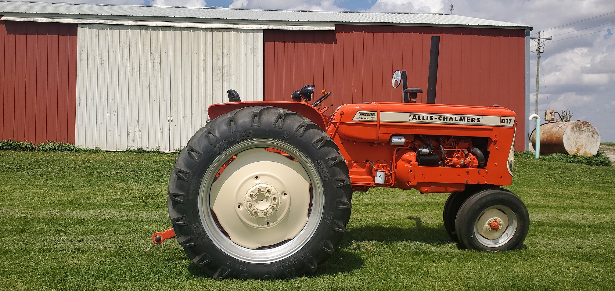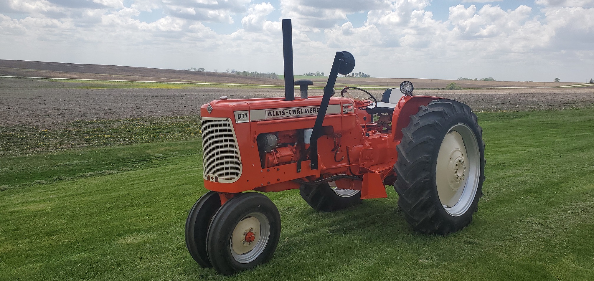 ATTENTION: I have decided to put this "one-of" tractor up for auction. I've had two years of tractor ride fun and farming with it. This past summer has really been great with new paint and decals, but I've got the next "one-of" project tractor waiting to be worked on, so I think it's time for the D-17 XT turbo diesel to go to someone who can really use it and enjoy a pretty modern tractor that doesn't have any computers on it !!! 85 PTO HP A-C turbo diesel engine, "live" 12 GPM hydraulic system, the original A-C high-pressure system in the torque tube, a rugged Cat #2 three-point hitch, the original snap-coupler hitch with 190 XT heavy duty lift latches, 55 amp Delco alternator, new brakes, new foot clutch, 16.9 x 28 Good-Year rears with 80%+ tread, etc, etc. It will run many years for someone with little upkeep and great performance. The starting bid will be $5,000 and bids to come to my cell phone, as I am the Auctioneer. Last bid will be at 6 PM Sunday Sept 12th, 2021. The new 15.5 x 38 rear tires pictured are available after the tractor is sold, and can be sold separately if someone wants them. Any bids or questions, please call 319-360-4788. Thank you for looking !!