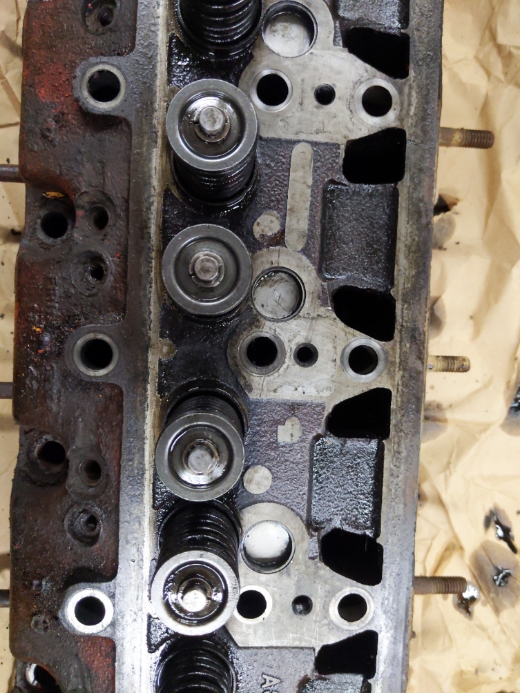 My workshop and believe I found the freeze plugs which there are three of. After wiping the top of it down and comparing it to another identical cylinder head online with the same stamp number it looks like this cylinder head has already been ground down and I believe it has multiple cracks going through the center of it. More to come...