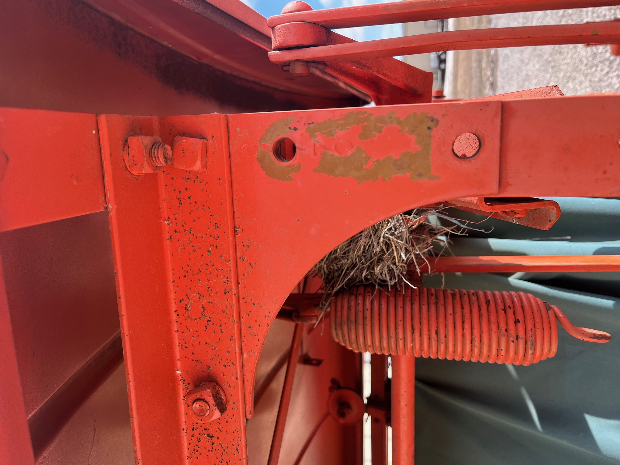 Got a serial number? Go to the back of the baler and stand facing the direction of travel. The SN is stamped below the "roof", in the top right corner the machine. Interesting find, looks like the fodder baler attachment, for baling corn stalks...