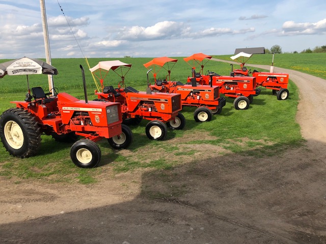 D17 1958 (NFE), WD45 1954 (NFE), WD 1952 (NFE), WD 1950 (WFE), Allis F-40 forklift, Allis CA, Allis D14, Ford Jubilee, Many IH Cub Cadets, 32 Ford Dump, 65 Comet, 66 F100.