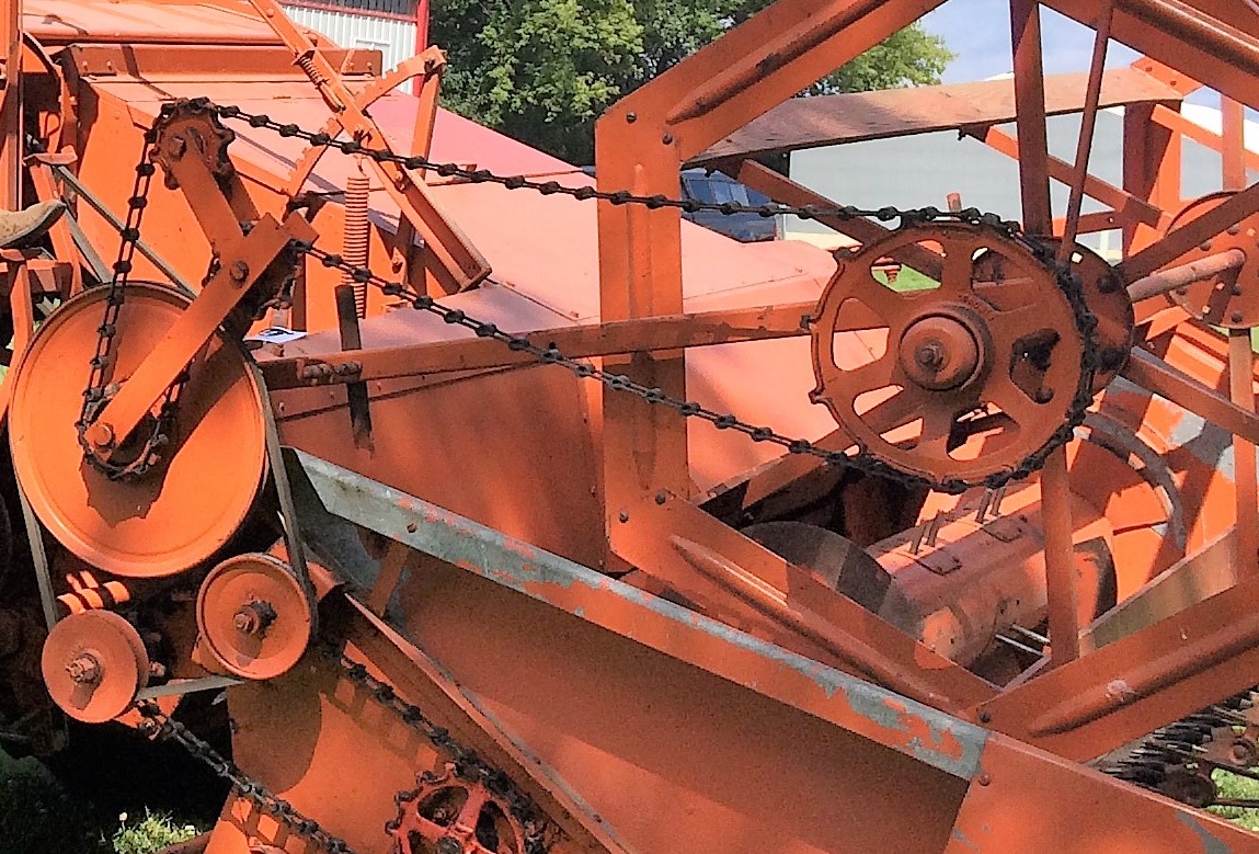 It also helps to have a grease gun hose that's fairly long for some of the fittings. I'd start with westfork's recommendation of 1,600 RPM on the cylinder, and if you want and conditions are right you can generally dial it down. I think it's more gentle on the grain that way. Not sure if you've been to the Orange Spectacular or not, but in the past they've put out a neat copy of the old "knowledge is power" booklet covering basic operation, adjustments, and troubleshooting on the All-Crops. It's a lot handier in the field than thumbing through the operator's manual. Something else I've found handy when getting everything set is to have a helper drive the tractor while you walk beside the machine with a grain scoop catching material off the shoe. You can then analyze it and check for loss. Once you get it set right, there will be little to no loss, except for maybe some small shriveled kernels once in a while.