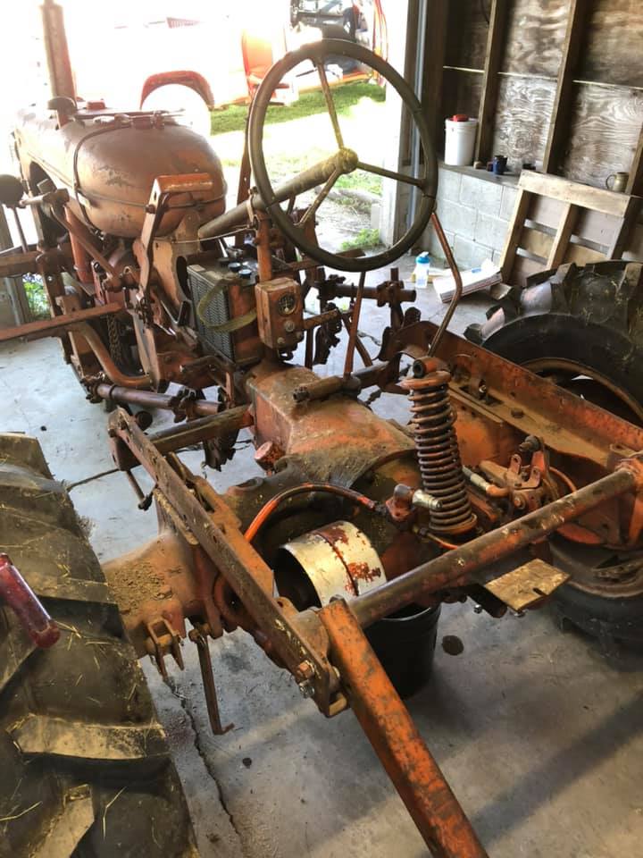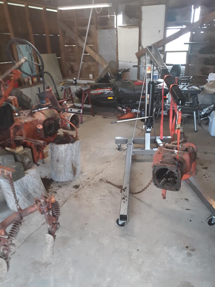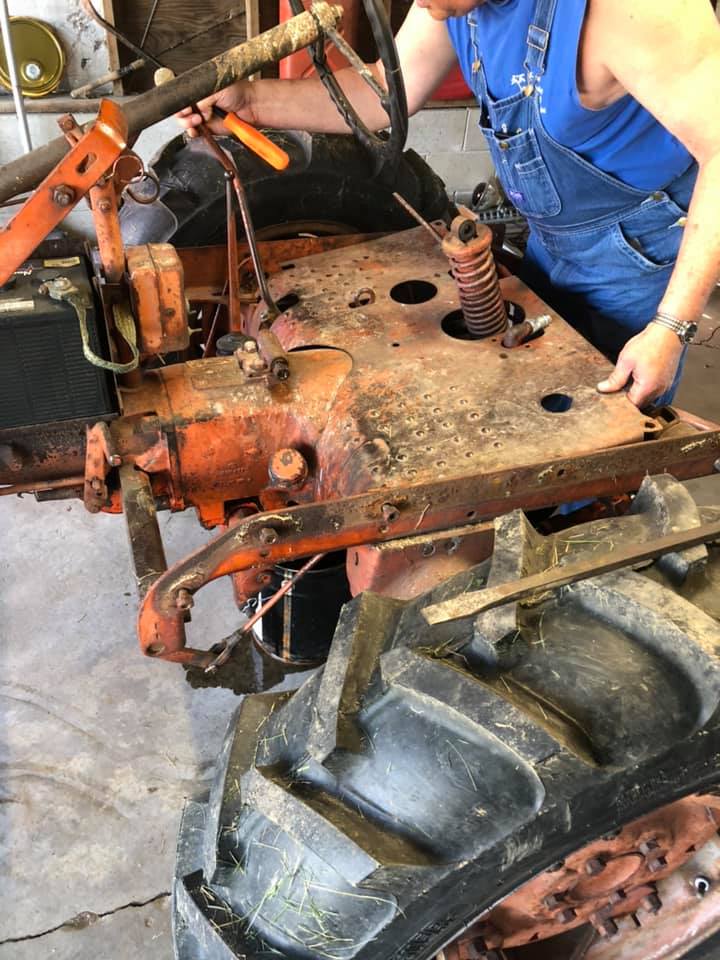 Seeing those photos takes me back to my CA hand clutch/brake project! Stripping it down to the seat frame is a pretty good chore all by itself. Engine crane comes in mighty handy at that point, especially if the tires are loaded. Nice work getting it all done in one day!