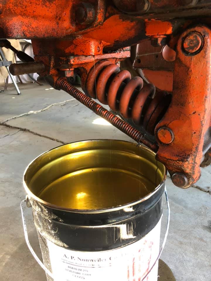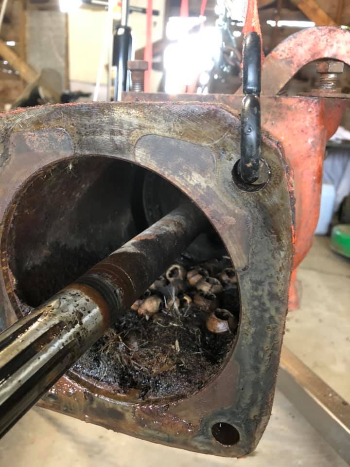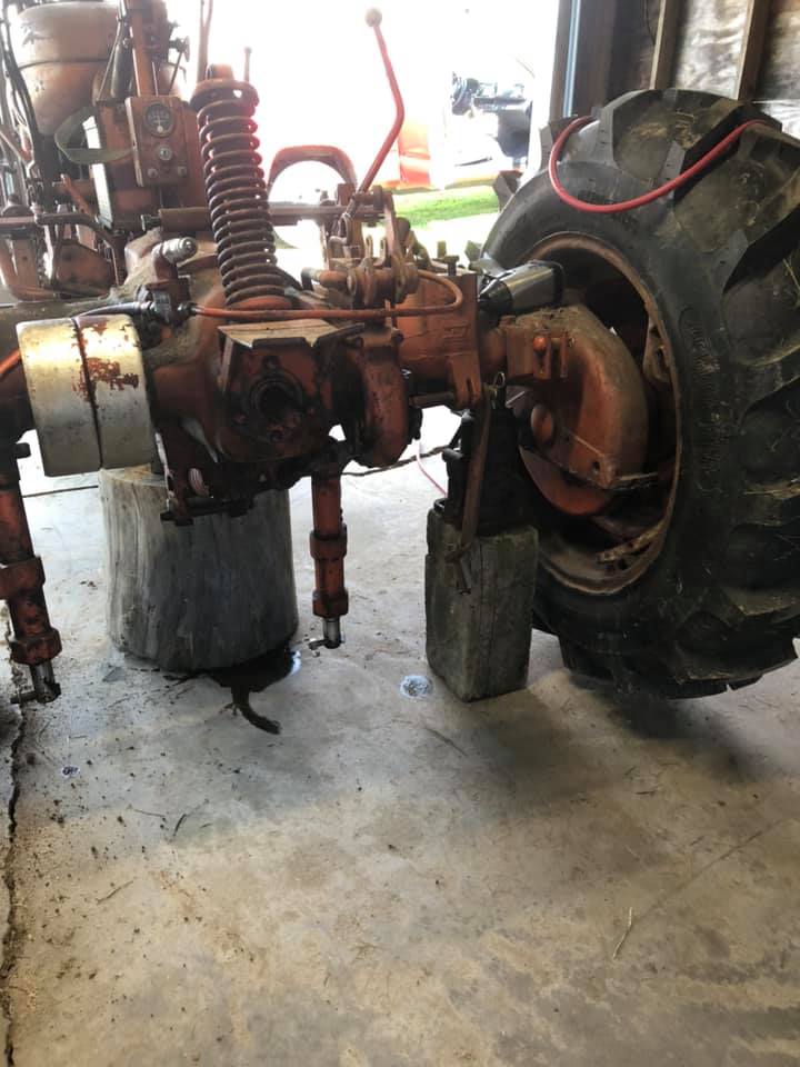 ![]() So here she is in all her glory. ![]() you can see the oil leaking from the "mouse holes" (still haven't really figured out what these holes are for) ![]() Close up of the leak ![]() Thanks Stiener Tractors for the Cow Tails ![]() Also - you may notice that these are the wrong seals .... I didn't find that out until we had the whole rear end apart - luckily my local equipment store had two on hand (I really lucked out on that) ![]() First step was to drain the rear end. ![]() Then remove the rear fenders, seat, and everything in between. My old man was nice enough to come out and give me a hand. ![]() ![]() Everything off minus the lift arms. ![]() Lift arms come off - then block the rear end and jack up the first axle to remove the rear tire. ![]() Used the shop crane to lift the rear Axle. NOTE: the service manual made no mention of removing the hand clutch lever in order to get the final drive out. It actually made no mention of the hand clutch at all. According to the service manual, the final drive should have just pulled away from the tractor as one piece. Turns out that the hand clutch lever needed to be removed prior to the rear axle coming off, then the hand clutch it self needed to be removed before we could get to the seal. ![]() The hand clutch ![]() The rear axle after the hand clutch was removed, the seal is inside the wheel bearing that is still attached at this point. ![]() After the axle and wheel bearing are removed. ![]() Reassembled and onto the other side. Replacing the seal was easy (sorry no pictures, I was caught up in the moment and forgot) ![]() Axle came off easy enough ( this side when much quicker after doing the more complicated side first ) ![]() They're called "mouse holes" but I feel like they could be referred to as "squirrel holes " ![]() Removing the wheel bearing ![]() ![]() all put back together -- the whole project was fast and easy. I thought it'd be a much larger job but we had it all wrapped up before the day was done. Sorry for the lack of pictures - I was a little preoccupied and forgot on multiple occasions to take some. Thanks again to everyone who pointed me in the right direction.