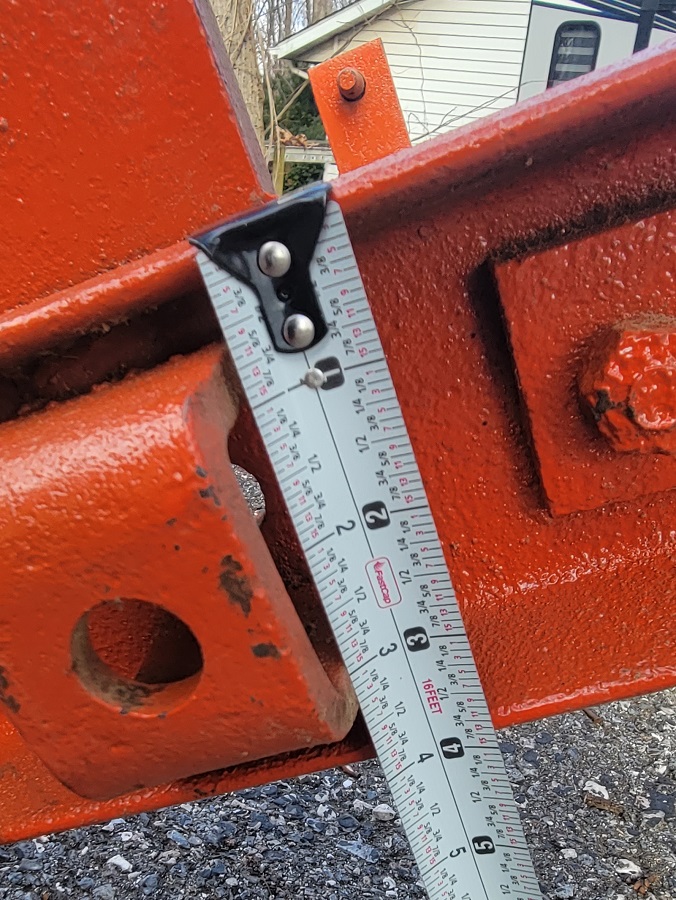 Going from memory, the tubes that slide over the lift arms are 2"x3" 1/4" wall. The telescoping boom is 2"x2"x1/4" inside of 2 1/2" x 2 1/2" x 1/4". On the end of the boom is a plate with keyhole slots so I can adjust the length of the chain. The chain has regular chain hook on one end, and choker hook on other end.