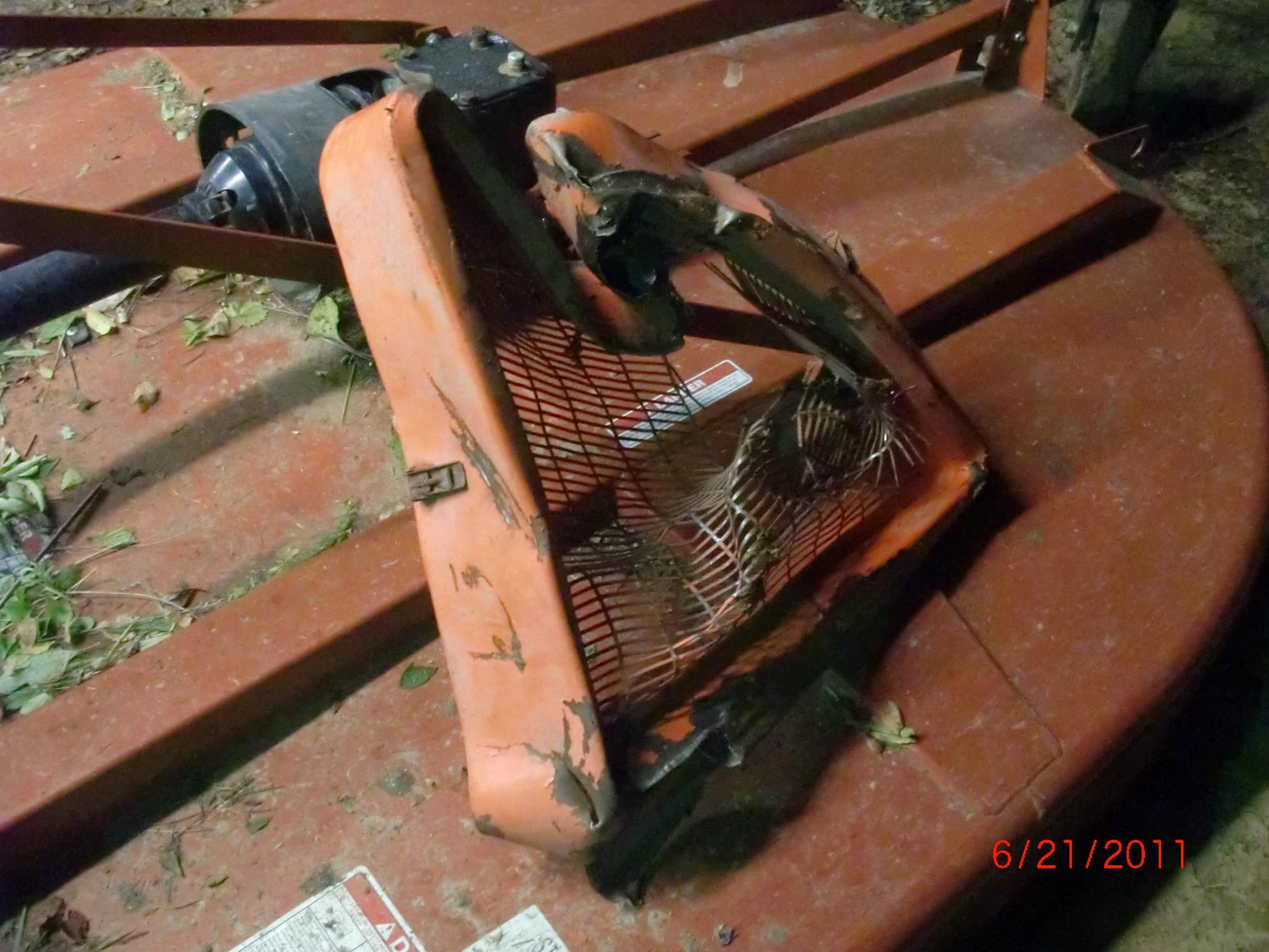 Don't feel like the lonely ranger.  Mowers and grilles are not always compatible, and discs aren't much better.  My 180 grill popped off when I hit a washout and the disc nailed it before i could stop.