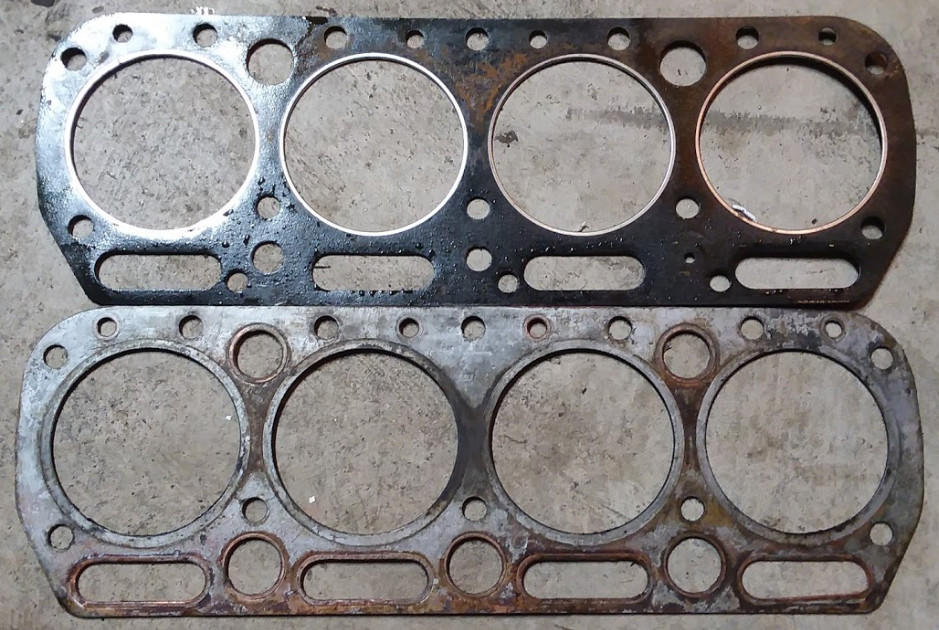 The new gasket does not appear to be metal on both sides with gasket material between? Been a long time since I worked on one but the old gaskets used to be metal on each side with the progressively smaller water jacket holes to the front and when you had ether the 12 bolt heads or even the early 15 bolt head with the three 3/8" head bolts (vs 7/16" later--- D17?) on the one side, we would take packaging string and put a strand between the metal all along the one side on heads with no head bolts and even the 3/8" bolts. This would seal those heads up nicely. That was at least what the older mechanics at the dealership I had worked at did. But no good if new gaskets are not metal on each side. |