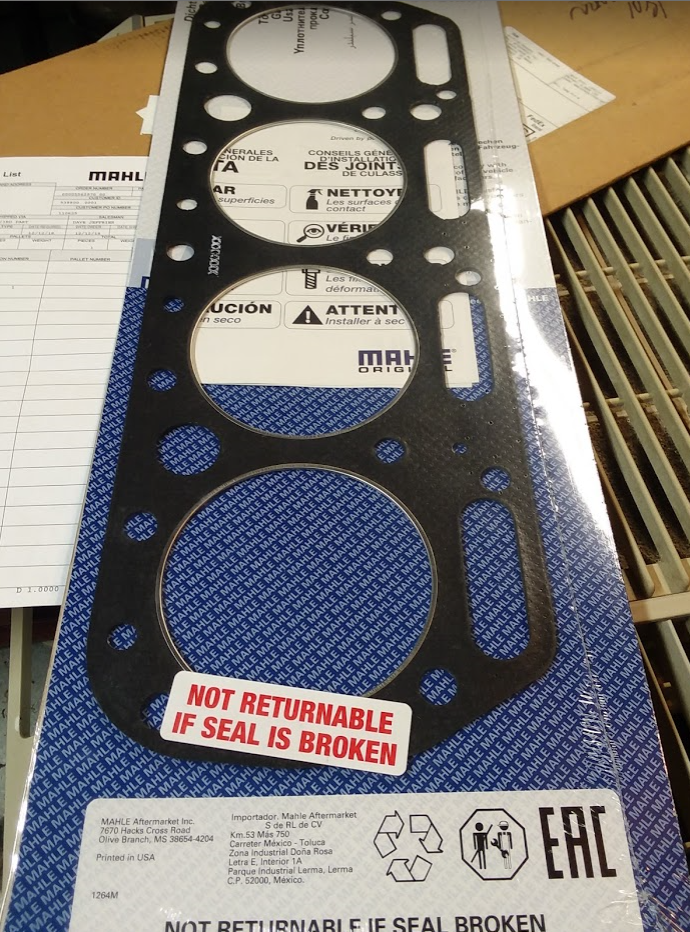 ![]() Ordered the part number listed and this is what I got. As far as I can tell mahle distributes the victors gaskets but this is what I got...looks like a step above my previous gasket but still not thick and metal on both sides like the original. I coated both sides with copper coat, took my time, and this one started seeping as soon as I started filling the coolant. It was better than the first but still leaky. I might have to bite the bullet and kick this thing to the machine shop, or the scrap yard.