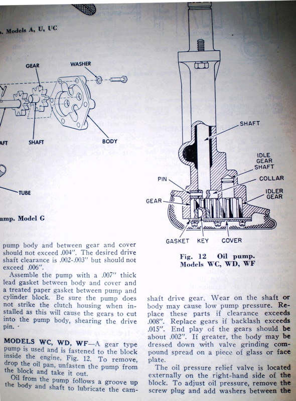 Never too late. I have that picture and words in my manual too. Someone else may be able to use that data! I just seen that the gears were longer in the WD45 than the WD oil pump. Just installed the cross angle under the front of the engine and added a .017 shim. measured gap was .012 inches. The air box and the manifold were hitting. I ground off a 1/4 inch chamfer on the corner of the manifold for some clearance between the air box. Made 5 of the small angled clips for bolts through the frame. Just carved these from some steel in the scrap bin. Regards, Chris