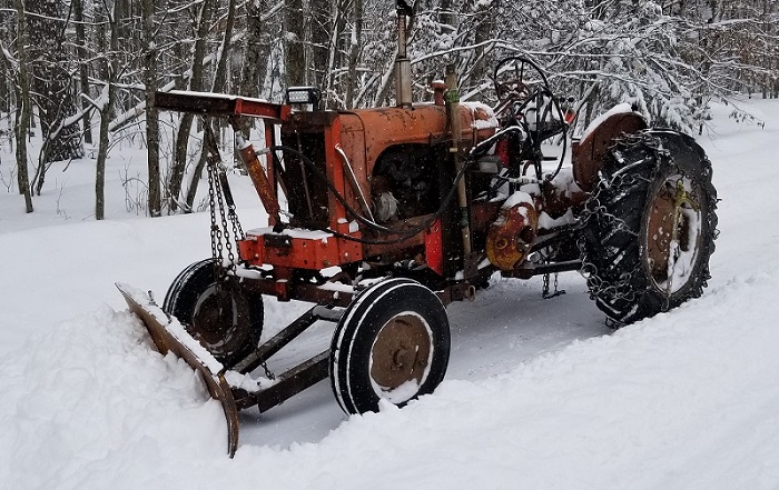 Plowing snow and skidding dead ash for firewood. With only a few acres it's the main exercise of the year. at_stove.jpg