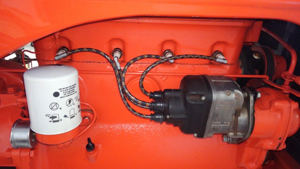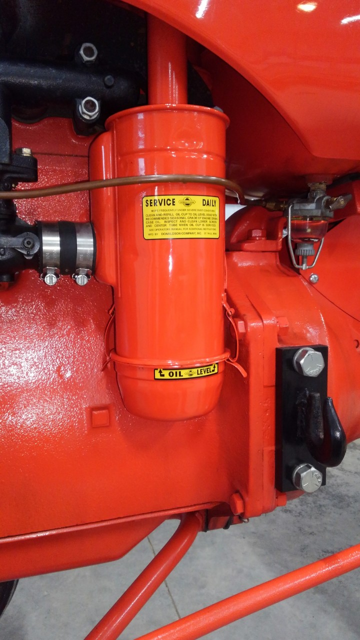 Changed out the late model black B decals for the early model blue decals and added the air filter decals. Looks a lot better. Had an engine miss, found it was crappy plug wires. Replaced them with a reproduction set from the Brillman Co, runs a lot better now (looks better to).